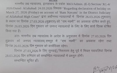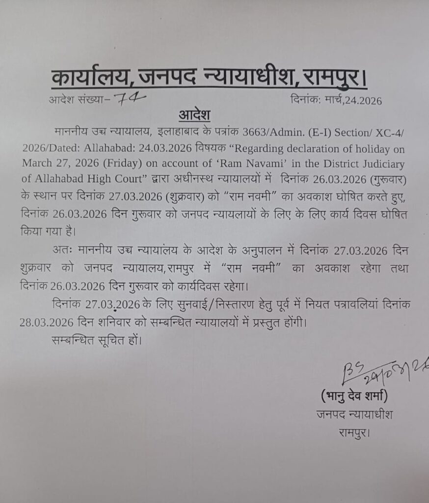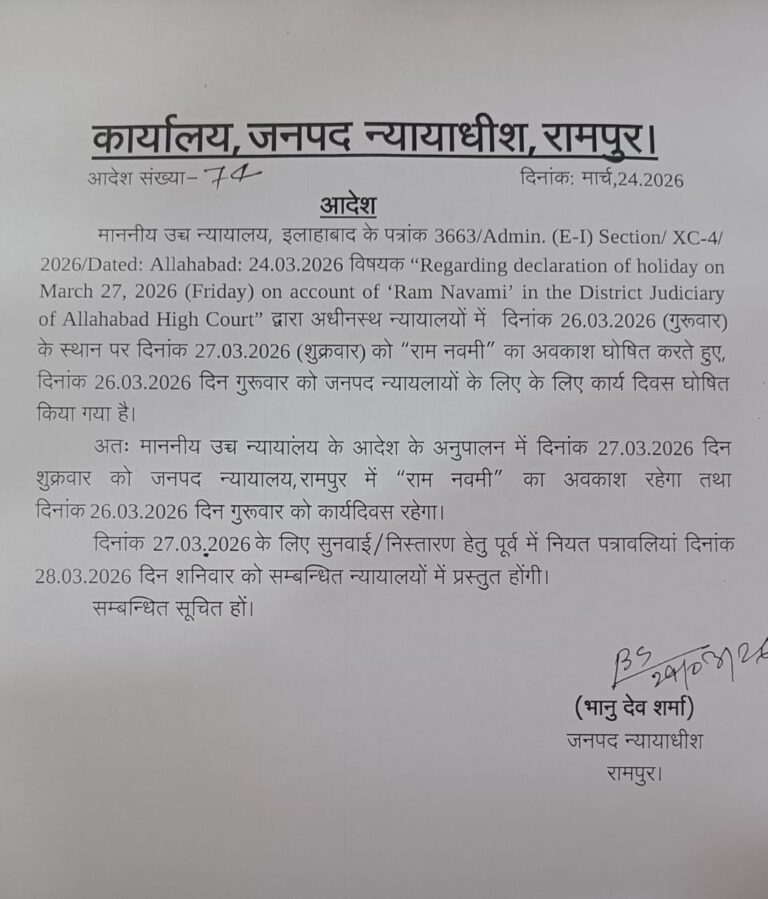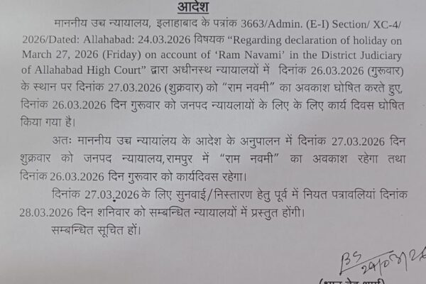 जनपद रामपुर🇮🇳🇮🇳 नित्य समाचार👁👁 महानिरीक्षक निबन्धन, उत्तर प्रदेश, लखनऊ एवं उप महानिरीक्षक निबन्धन, मुरादाबाद मण्डल, मुरादाबाद के पत्रों के क्रम में अवगत कराया गया है कि वित्तीय वर्ष के अंतिम माह मार्च 2026 में निर्धारित राजस्व लक्ष्य की प्राप्ति संतोषजनक न होने के दृष्टिगत विशेष व्यवस्था लागू की गई है। अपर जिलाधिकारी (वि0/रा0) संदीप कुमार…