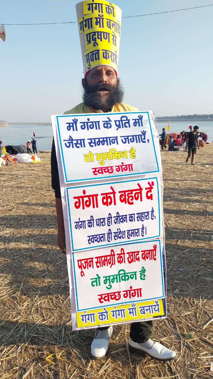 गंगा दशहरा के पावन पर्व पर नगर-निगम के स्वच्छता ब्राण्ड एम्बेसडर राजेन्द्र कुमार तिवारी दुकानजी गंगा स्लोगन लिखे परिधान पहनकर लोगो से घूम घूम कर अपिल कर रहे है राष्ट्रीय नदी गंगा को प्रदूषण से बचाए रखने के लिये हमारा आपका अब कर्तव्य है कि अगर दो बूँद अमृत जल चाहिए अपने माता पिता पुरखो के साथ पूजा पाठ यग्य हवन पूजा मे तो संकल्प ले कि गंगा मे माला फूल हवन सामग्री पॉलिथिन पूजा पाठ की पुस्तक तस्वीर नहाने के वाद कुछ लोग अपने कपडे गंगा मे छोड देते है ईसके लिये आपको ही सोचना है की गंगा से अमृत जल चाहिए या प्रदूषण मुक्त जल प्रदूषण युक्त जल से आपके द्वारा करने वाले पूजा पाठ के लिए ये जल अच्छा फल कभी नही देगा ईसलिये सभी घाट के किनारे रहने वाले तिर्थपुरोहित नाविक माला फूल दूध वाले आप अगर गंगा को प्रदूषण से बचाये रखने के लिए जो आपके परिवार के जिवन यापन का एक साधन है उसे बचाने के लिये आप सब का दायित्व है कि गंगा साफ-स्वच्छ निरन्तर हम सबको अमृत जल प्रदान करती रहे कोई गंगा मे कुल्ला दातून साबून न करने पाये माला फूल या अन्य कोई सामग्री न फेकने पाये पूजा फाठ के लाये गये