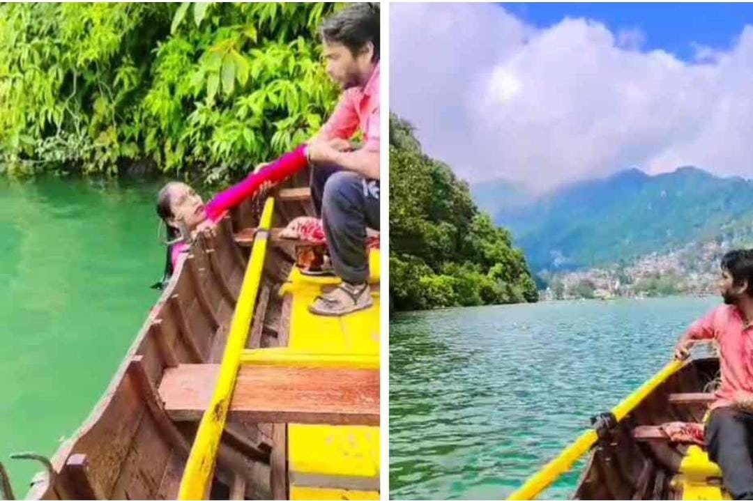 उसी दौरान वीडियो बना रहे पर्यटक ने महिला को ठंडी सड़क से नीचे झील में गिरता देखा। पर्यटक और नाविक तुरंत ही महिला की मदद के लिए आगे बड़े। तुरंत ही नाविक बोट लेकर महिला के पास पहुंचा और पतवार का सहारा देकर उसकी जान बचाई। ये पूरी घटना पर्यटक के कैमरे में कैद हो गई। घटना का ये वीडियो अब तेजी से सोशल मीडिया में वायरल हो रहा है।