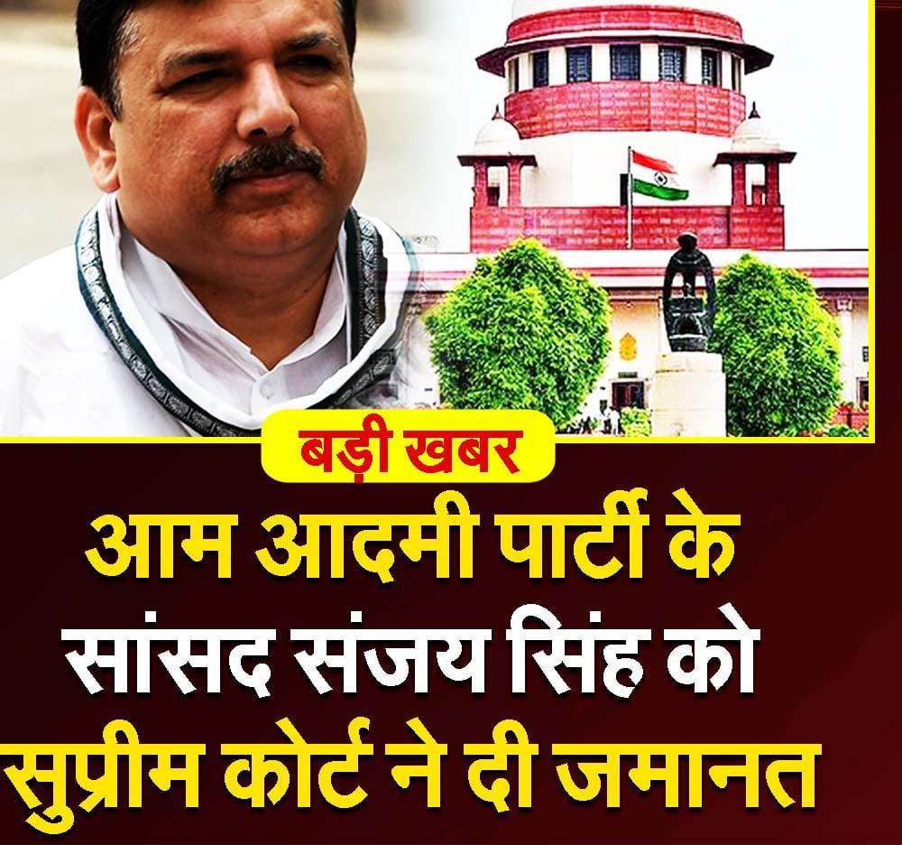 आम आदमी पार्टी के सांसद संजय सिंह आज सुप्रीम कोर्ट से जमानत मिल गई। संजय सिंह पिछले छह महीने से दिल्ली शराब पॉलिसी मामले जेल में थे। ED ने उन्हे गिरफ्तार कर लिया था। संजय सिंह की जमानत के लिए आज कोर्ट में लंबी सुनवाई हुई जिसमें संजय के वकीलों ने कोर्ट के सामने ये तथ्य प्रस्तुत किया की उनके पास से न पैसे बरामद हुए न कोई मनी ट्रेल है। सिर्फ एक सरकारी गवाह के बयान के आधार पर उन्हें गिरफ्तार किया गया जबकि सरकारी गवाह दिनेश अरोरा ने अप्रूवर बनने से पहले कभी उनका नाम नही लिया था। कोर्ट ने ईडी को दोपहर दो बजे तक का समय दिया की अगर संजय सिंह की आगे कस्टडी लेना है तो आपको कोर्ट को बताना होगा। लंच बाद जब कोर्ट बैठी तो ED ने जमानत का विरोध नही किया और सुप्रीम कोर्ट ने संजय सिंह की जमानत मंजूर कर दी। संजय सिंह कल तक जेल से रिहा हो सकते हैं।