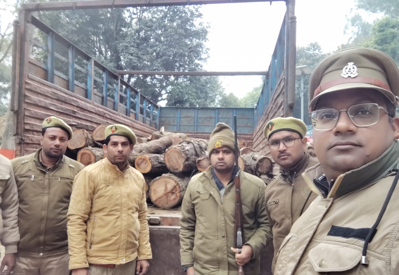 साहू वाला वन रेंज के कर्मचारियों ने मूल्यवान खैर की लकड़ियों से भरी डीसीएम पकड़ी