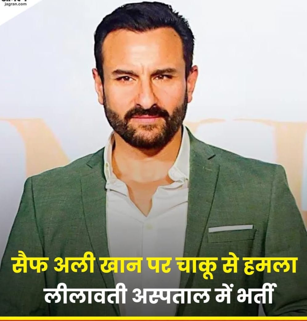 मुंबई :- फ़िल्म अभिनेता सैफ अली खान पर देर रात उन के घर में घुस कर अज्ञात व्यक्ति ने चाक़ू से हमला कर दिया…पुलिस का कहना है के “एक अज्ञात शख्स सैफ़ अली ख़ान के घर में घुसा. इसके बाद सैफ़ और इस शख़्स के बीच हाथापाई हुई. एक्टर इसमें घायल हो गए हैं और उनका इलाज चल रहा है.