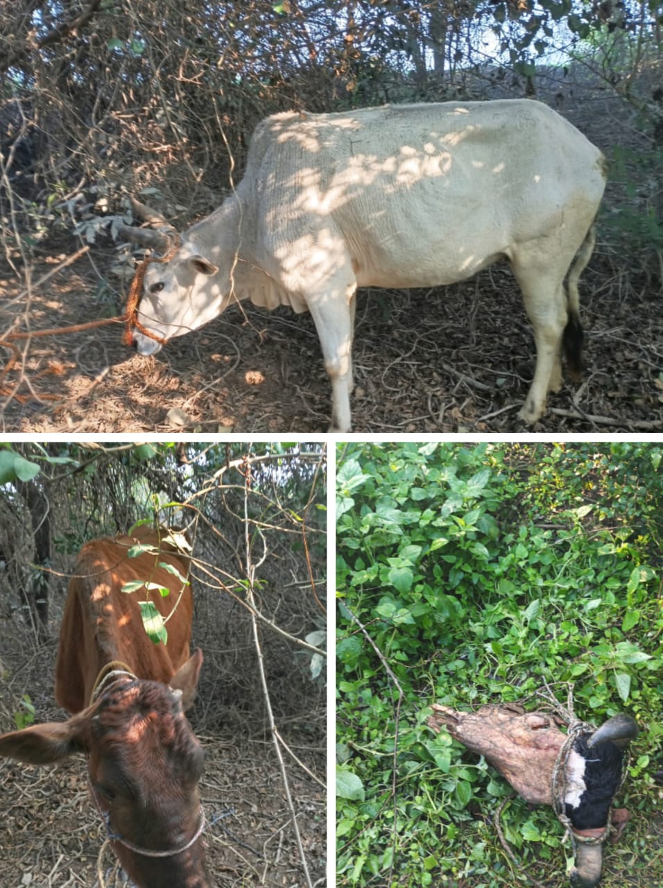अमरोहा जनपद के थाना सैद नंगली क्षेत्र में बुधवार की सुबह गोकशी का एक मामला सामने आया। इकौंदा उझारी मार्ग पर स्थित एक तालाब के पास एक गोवंश के अवशेष मिले, जबकि पास ही जंगल में दो पशु पेड़ से बंधे हुए जिंदा मिले। घटना की जानकारी मिलते ही स्थानीय ग्रामीणों की भीड़ मौके पर जमा हो गई।सूचना पाकर मौके पर पहुंची पुलिस ने तत्काल कार्रवाई करते हुए मृत पशु के अवशेषों को गड्ढे में दफनाया और फोरेंसिक जांच के लिए नमूने भेजे। जिंदा मिले दोनों गोवंश पशुओं को ग्रामीणों की देखरेख में सौंप दिया गया है। थाना प्रभारी दिनेश कुमार शर्मा ने बताया कि मामले की गंभीरता से जांच की जा रही है और गौतस्करों को किसी भी कीमत पर बख्शा नहीं जाएगा।हसनपुर तहसील क्षेत्र में गोकशी की घटनाएं लगातार बढ़ रही हैं। अब तक दर्जनों ऐसी घटनाएं सामने आ चुकी हैं, जिससे स्थानीय लोगों में आक्रोश व्याप्त है। स्थानीय लोगों का कहना है पुलिस ने आश्वासन दिया है कि क्षेत्र में गश्त बढ़ाई जाएगी और गो तस्करों के खिलाफ कड़ी कार्रवाई की जाएगी।