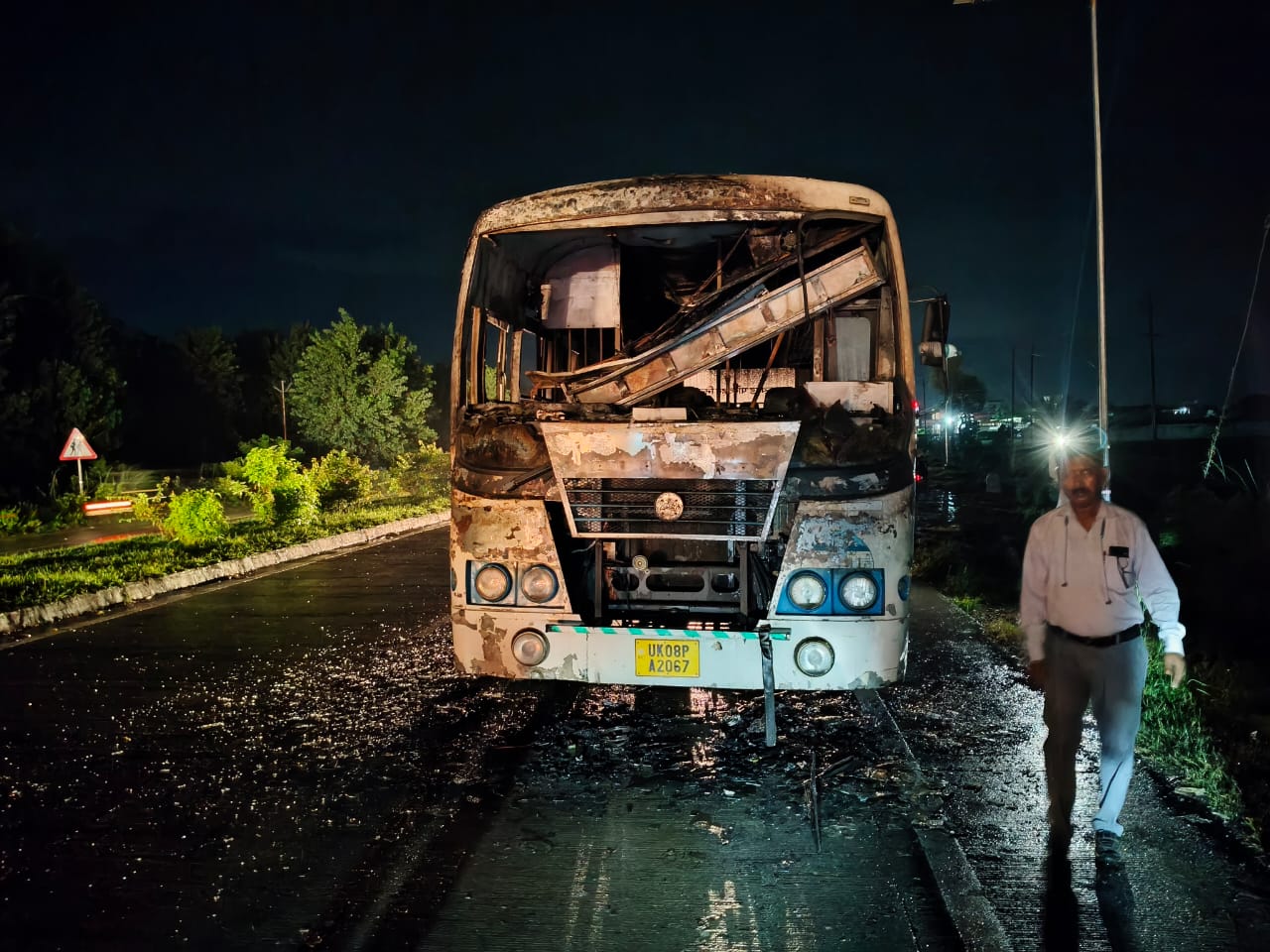 उत्तराखंड डिपो की रोडवेज बस में शॉर्ट सर्किट से लगी आग:-* यात्रियों को सकुशल बस से बाहर निकाला*
