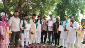 बिलासपुर :- भारतीय किसान यूनियन महात्मा टिकैत की मासिक पंचायत कर जिला अध्यक्ष ज्ञानपाल यादव के नेतृत्व में S.D.M बिलासपुर की अनुपस्थिति में स्टेनो को दिया ज्ञापन बिलासपुर तहसील प्रांगण में ही जिसमें तमाम कार्यकर्ताओं ने संगठन का दामन थामा जिसमें मो सलीम अहमद को नगर अध्यक्ष केमरी और हाजी पप्पू को जिला सचिव रामपुर अमीर अहमद जी को जिला उपाध्यक्ष रामपुर चंद्रपाल को ग्राम कुर्तियां अध्यक्ष मनसा देवी को महिला बिंग की नगर अध्यक्ष नीरज सैनी तारा देवी सभी को सदस्यता ग्रहण कराई गई और इमरान खान को नगर उपाध्यक्ष बनाया गया और इन सबको जिला अध्यक्ष ने भरोसा दिलाया कि किसानो के सम्मान में कभी समझौता नहीं होगा और सभी नए कार्यकर्ताओं को ईमानदारी से संगठन हित में संगठन विस्तार करने के लिए बताया और जिला महासचिव हरीशंकर यादव ने कहा रवाना डांडिया जंगल में हो रही लकड़ी की तस्करी और हरे फलदार आम के वृक्षों को लगातार काटा जा रहा है सिंचाई विभाग के द्वारा नहरो पर अवैध कब्जा कराया जा रहा है आवारा पशुओं से हो रही फसल बर्बाद हो रही है और आधार कार्ड अपडेट सेंटर भी बिलासपुर तहसील स्तर पर होना चाहिए क्योंकि आम आदमी और किसानों को आधार कार्ड अपडेट करने में परेशानियां का सामना करना पड़ रहा है पंचायत में उपस्थित मंडल सलाहकार जाकिर हुसैन जिला महासचिव हरिशंकर यादव ब्लॉक अध्यक्ष चमरवा श्याम सुंदर यादव ब्लॉक अध्यक्ष रहीश अहमत उरमन यादव सुरेश सैनी अनस खान मुन्ने खा आरिफ अंसारी विरासत अली मोहम्मद आसिफ लाल सिंह जिला संगठन मंत्री रफीक अहमद गंगा शरण पांडे आदि किसान शामिल रहे