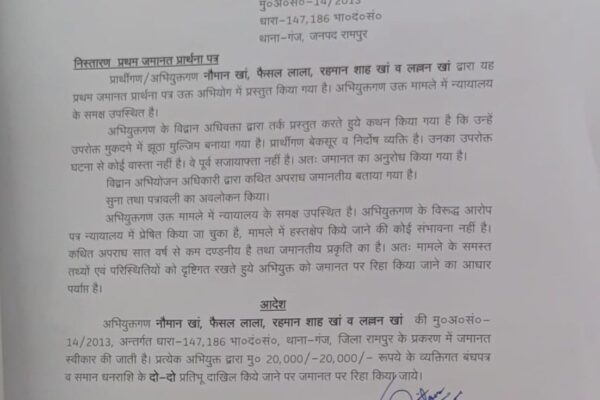 सपा सरकार में आज़म खां के दबाव में लिखवाए गए मुक़दमे में AAP नेता फ़ैसल लाला और कांग्रेसी नेता नोमान खान सहित चार लोगों की ज़मानत मंज़ूर*