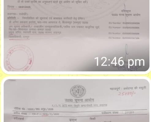 जनपद रामपुर:-                      (संवाददाता) नित्य समाचार न्यूज़ एजेंसी      ——————————-++—–     सूचना आयोग ने दो पंचायत सचिवो पर पचास हजार का जुर्माना लगाया ——————————————— बिलासपुर :- आर टी आई एक्टिविस्ट को मांगी गई सूचनाएं ना देना दो ग्राम पंचायत सचिवो को भारी पड़ गया l…