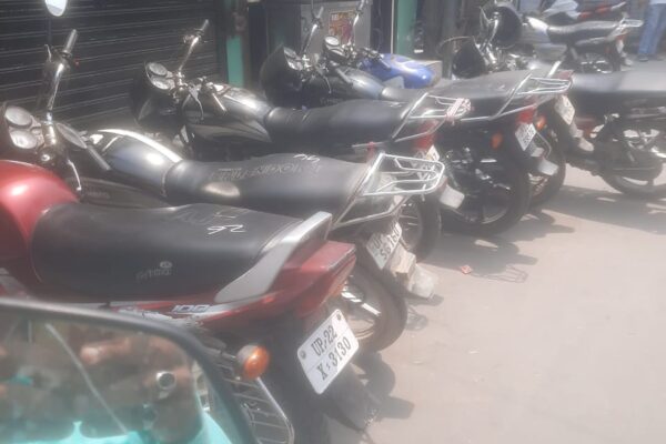 सेवा और सहारा हॉस्पिटल के सामने सड़क के किनारे मोटरसाइकिल खड़ी करने वालों से की जा रही अवैध वसूली