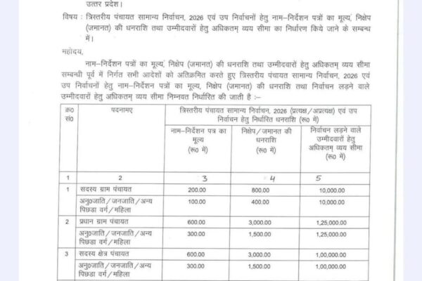 यूपी पंचायत चुनाव 2026 नामांकन शुल्क और खर्च की सीमा तय